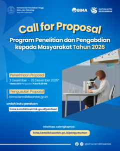 Dalam rangka mendukung pelaksanaan tridarma perguruan tinggi serta meningkatkan mutu penelitian dan pengabdian kepada masyarakat, Direktorat Jenderal Riset dan Pengembangan melalui Direktorat Penelitian dan Pengabdian kepada Masyarakat (DPPM) membuka Penerimaan Proposal Program Penelitian dan Pengabdian kepada Masyarakat untuk Pendanaan Tahun Anggaran 2026.
